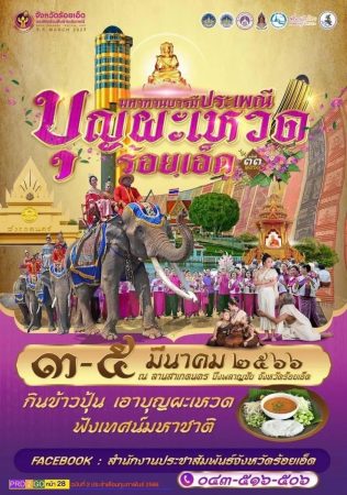 Read Moreร้อยเอ็ด…เมืองสาเกตุนคร101จัดแถลวข่าวชวนเที่ยวงาน มหาทานบารมี ประเพณีบุญผะเหวด ฟังเทศน์มหาชาติ กินข้าวปุ้นฟรีทั้งงาน (3-5มี.ค.66)