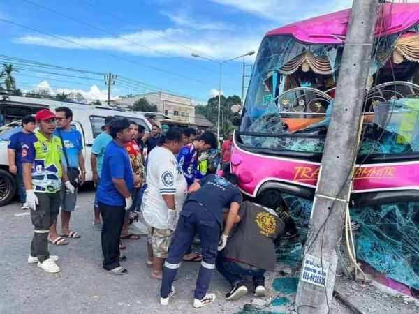 กระบี่-หวิดดับ!! ยกคันรถทัวร์โดยสารหักหลบรถกระบะเลี้ยวยูเทิร์นตัดหน้ากระทันหัน เสียหลักพุ่…