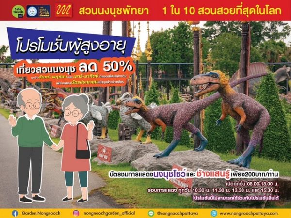สวนนงนุชพัทยา ขยายโปรโมชั่นของเดือนกรกฎาคมซื้อบัตรผ่านประตูสำหรับผู้สูงอายุลด50% ออกไปถึง …