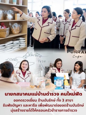 นายกสมาคมแม่บ้านตำรวจ คนใหม่ออกตรวจเยี่ยม ร้านปันรักษ์ ทั้ง 3 สาขา รับฟังปัญหา และหารือ เพื่อพัฒนาต่อยอดร้านปันรักษ์ มุ่งสร้างรายได้ให้ครอบครัวข้าราชการตำรวจ