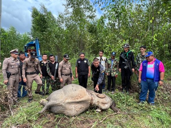 สลดพบลูกช้างป่าเพศผู้วัย 5-6 ปี นอนเสียชีวิตจมกองเลือดกลางป่ายูคาลิปตัส ชายป่าบ้านโป่งเจริ…
