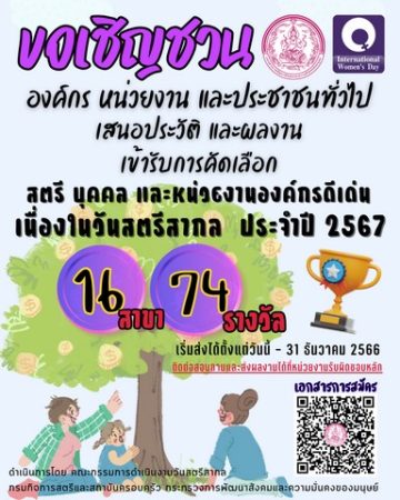 ขอเชิญชวนสื่อมวลชนร่วมส่งผลงานเข้ารับการคัดเลือกสตรีดีเด่น ด้านสื่อมวลชน และสื่อสารมวลชนดี…