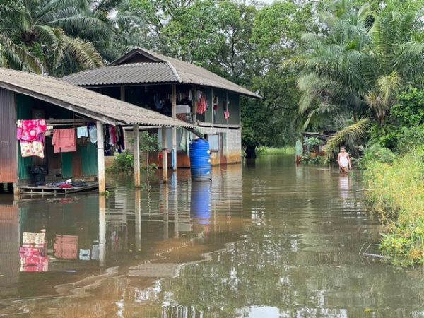 นราธิวาส-ฝนตกหนักต่อเนื่องส่งผลให้หมู่บ้านติดเชิญเขาบางพื้นที่ใน อ.สุไหงปาดี จ.นราธิวาส หล…