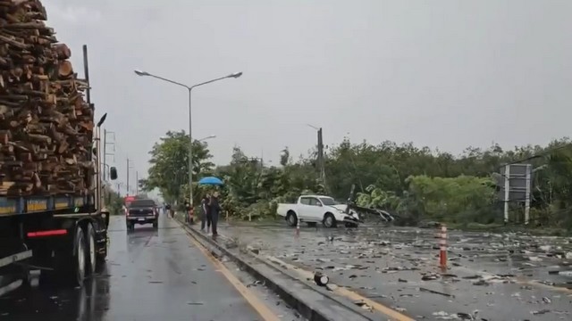 สงขลา-เกิดลมฝนถล่มในพื้นที่บ้านพรุ อ.หาดใหญ่ ทำให้ต้นไม้ใหญ่และเสาไฟฟ้าล้มขวางถนนเส้นทางกาญจนวนิช หาดใหญ่-สะเดา