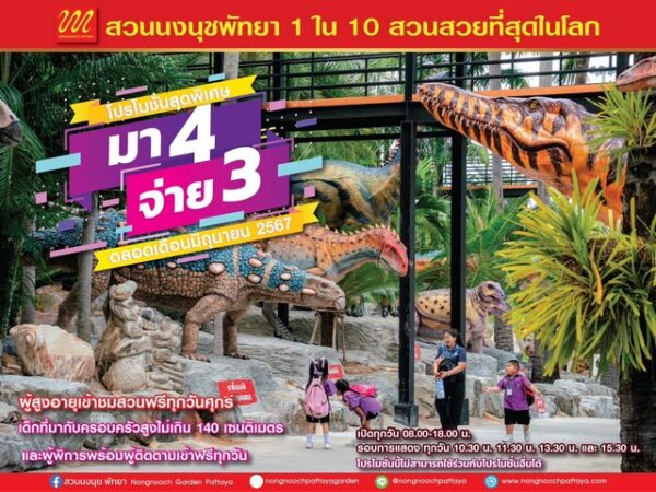 สวนนงนุชพัทยา ขยายโปรโมชั่นไทยเที่ยวไทยมา 4 คนจ่าย 3 คน ออกไปอีก 1 เดือน ตลอดเดื…