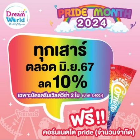 ดรีมเวิลด์ร่วมฉลอง PRIDE MONTH จัดโปรปังทุกวันเสาร์เที่ยวสนุกทั้งลดทั้งแถม