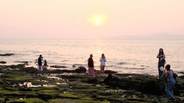 นทท.แห่ชมปรากฏการณ์ “ตะไคร่น้ำสีเขียว” ที่แหลมบาลีฮาย เมืองพัทยา สุดงดงาม เมื่อวันที่ 26 ม…