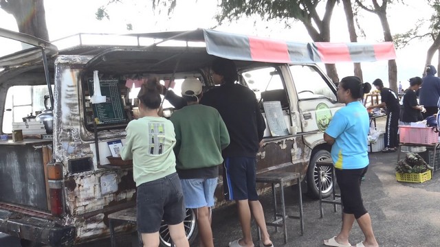 สงขลา-ร้านขายน้ำชากาแฟสด อาหารเช้า ริมชายหาด ชลาทัศน์ ช่วงวันหยุดสุดสัปดาห์คึกคัก บรรยากาศ…
