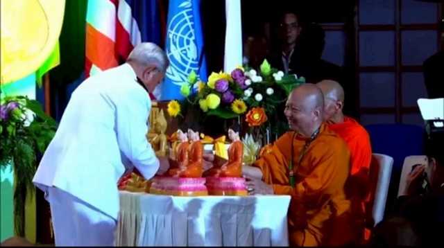 พระบาทสมเด็จพระเจ้าอยู่หัว ทรงพระกรุณาโปรดเกล้าฯ ให้ พลเอกสุรยุทธ์ จุลานนท์ ประธานองคมนตรี เป็นผู้แทนพระองค์ในพิธีเฉลิมฉลองวันวิสาขบูชา วันสำคัญสากลของโลก ครั้งที่ ๒๐