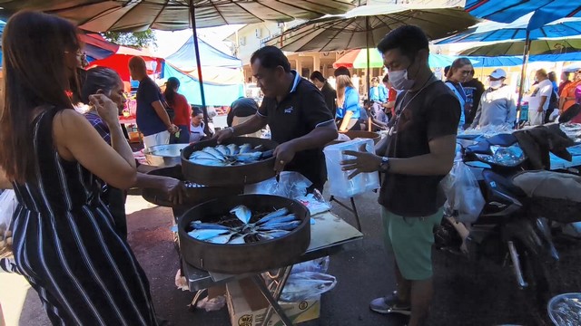 สงขลา-สามพ่อแม่ลูก สั่งปลาทูนำเข้าจากโอมาน อินเดีย และปากีสถาน มาวางขายในตลาดนัดโดยทำเป็น …
