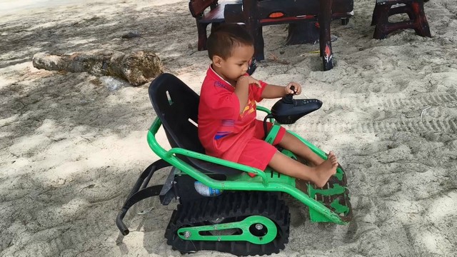 สงขลา-ของเล่นใหม่สำหรับเด็กๆ “รถตีนตะขาบไฟฟ้าชายหาด”ที่สร้างสรรค์นำมาบริการบุตรหลานนักท่อง…