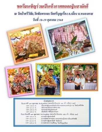 หนองคาย-ขอเชิญชวนสาธุชนที่มีจิตศรัทธาคณะสายบุญรวมพลังบุญต่อทุนกฐินสามัคคีที่วัดป่าศรีวิลัย
