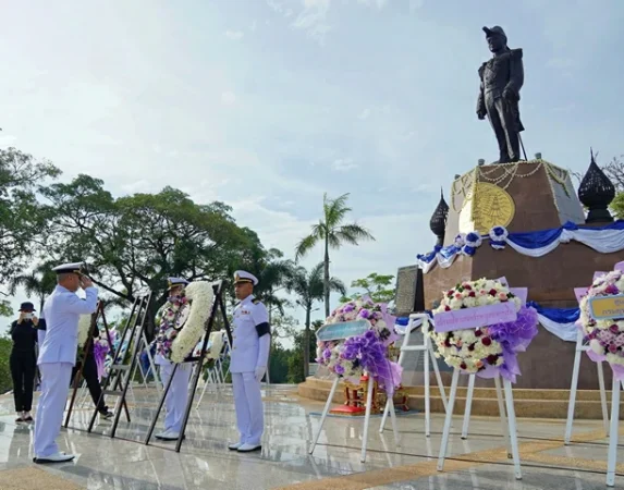 กองทัพเรือ จัดพิธีวางพวงมาลาพระบรมราชานุสาวรีย์พระบาทสมเด็จพระรามาธิบดีศรีสินทรามหาวชิราวุ…